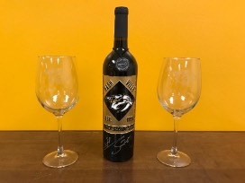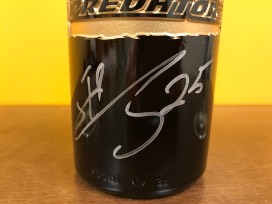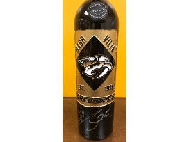 Preds etched wine bottle autographed by #25 Alexei Emelin. Package includes two (2) Pred head wine glasses.