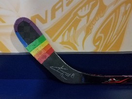 Preds Pride Night stick used during tonight's warm ups autographed by #8 Kyle Turris