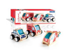 Guidecraft has supplied wooden toys including dump trucks, fire truck, police car, helicopter, and fairytale castle blocks.