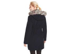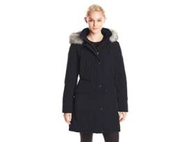 Get cozy in this black Calvin Klein women's down jacket with faux fur hood (small).