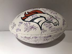 This is an autographed NFL Football by the entire Denver Broncos 2017-2018 team. The Broncos have won eight AFC Championships and three Super Bowl championships; sharing the record for second most Super Bowl appearances.