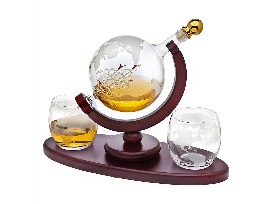 Whiskey Decanter Globe set with two (2) whiskey glasses.