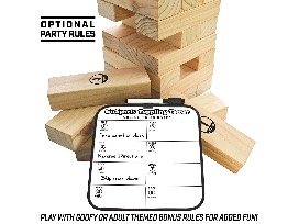 Giant Wooden Toppling Tower (Stacks to 5+ feet), Includes Bonus Rules with Gameboard, Made from Premium Pine Blocks.