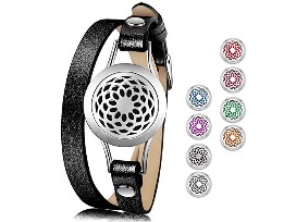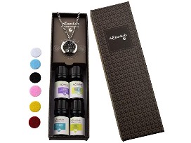 Includes a Tree Of Life Essential Oil Diffuser Necklace Stainless Steel Locket Pendant with 4 essential oils and Essential Oil Diffuser Bracelet with 8 color pads.