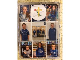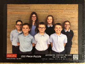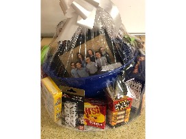 Customized photo puzzle of the class, custom "4th Grade" deck of cards, 3rd/4th Grade photo mouse pad, large throw blanket, seven large boxes of candy, popcorn, peanuts, & large bowl.