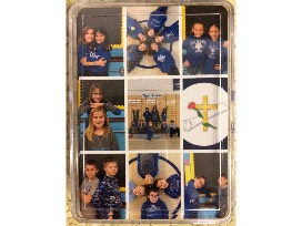 Customized photo puzzle of the class, custom "3rd Grade" deck of cards, 3rd/4th Grade photo mouse pad, large throw blanket, seven large boxes of candy, popcorn, peanuts, & large bowl.