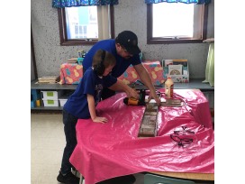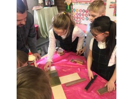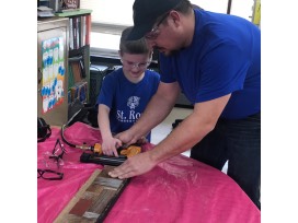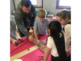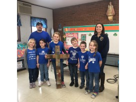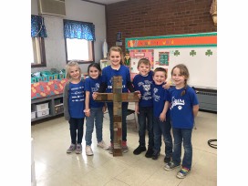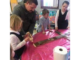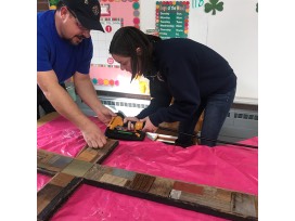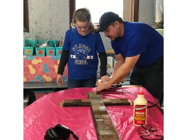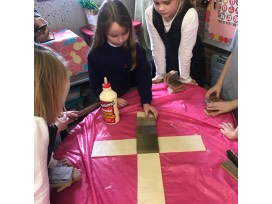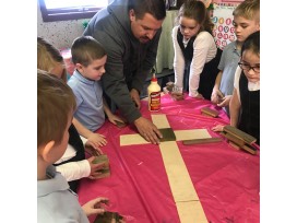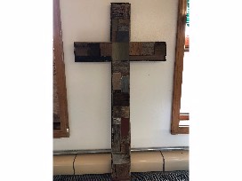 Beautiful handmade wooden cross made from reclaimed wood by each one of our first graders.