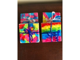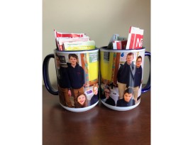 Includes a fleece blanket, french roast coffee, two (2) photo mugs of the 5th grade class filled with hot chocolate & tea, and eight (8) coasters made by each student.