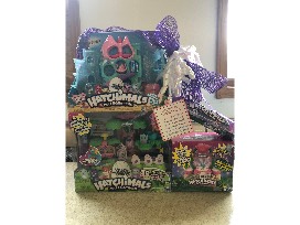 Includes the 'Coral Castle' playset, 'Hatchery Nursery' playset (super rare!), 'Talent Show' playset, Carton of 12 Hatchimals, and CollEGGtibles figurines.