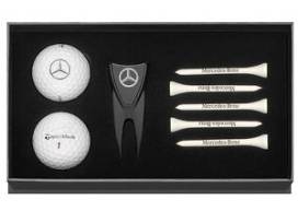For the stylish golfer! Package includes a Mercedes-Benz tote, branded umbrella and water bottle, a journal and Mercedes-Benz branded gift box with Taylor Made golf balls, tees. and divot tool. Value $225.