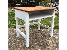 Mr. Mike Morrison (husband of ILS Kindergarten teacher, Mrs. Amanda Morrison) has refinished, painted, stained and sealed these old ILS student desks (Kindergarten/1st grade desks). Perfect for a kid's desk, end table, or bedside table.