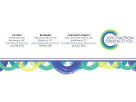 - Brush up on your dancing skills with this all inclusive adult 5-class drop-in pack for Joy of Motion Dance Center! A non-profit charitable organization founded in 1976, Joy of Motion Dance Center has since developed into the "the area's most comprehensive dance institution" (Washington Post), engaging 60 faculty members and teaching artists, providing more than 300 weekly classes, and drawing nearly 9,000 unique students and artists annually to three studio locations (in two Wards of DC and in Bethesda, MD). With more than 40 years of history in the District, Joy of Motion has become the hub of a vast artistic community, committed to excellence both in high-level training and community-based arts experiences.