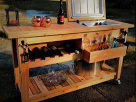 Yip Yok ? it's 5 o'clock! Up-level your outdoor space into an entertaining oasis with the Yip Yok Bar-Cart. Crafted locally (Wilmette) with sustainable U.S. Western Red Cedar, the company is devoted to practices that are eco-friendly, as well as U.S. friendly. The cart is waterproof sealed for indoor/outdoor use and contains a 48 quart built-in cooler, drain and faucet, in addition to plenty of counter and storage space, including a wine shelf and detachable front "caddy". Plus, a mounted bottle opener and a bottle cap-catcher made from a removable cowbell (more Yip Yok!) and a space designed for a bluetooth speaker. Quick, simple setup and clean-up, the Yip Yok Bar-Cart is a sleek way to carry indoor comfort to the outdoors!