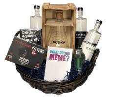 Gather your closest friends and laugh the night away with 3 hysterical games! Fill up your vodka decanter with these 3 bottles of Effen Vodka (regular, orange, and cherry flavored). Games include Cards Against Humanity, What Do You Meme?, and Exploding Kittens.
