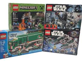 From Star Wars and Minecraft to Lego City, your favorite LEGO builder will switch into high gear when he or she begins building Darth Vader, Yoda's Jedi Starfighter, Minecraft the Cave, and the retired Grand Prix Truck from Lego City.