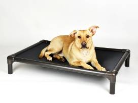 Kuranda dog bed is great for dogs with allergies and sensitive skin. For dogs up to 100 pounds. Includes a 1-year chew proof warranty.