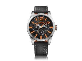 This sleek watch by BOSS Orange is crafted with a stainless steel case and leather strap. The dial features three-eye quartz chronograph movement and details in bold, statement making orange. A true wardrobe essential. Value $175.