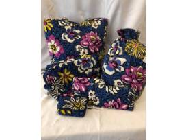 1If blue and purple are your favorite colors, then this Vera Bradley African violet collection is for you! This package contains six Vera Bradley accessories in this delightful multi-tone pattern: large cosmetic case, euro wallet, sunglass sleeve, pill box, "dirty clothes" bag, carry bag.