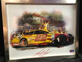 Joey Logano Signed NASCAR Mini-Helmet and signed 11 x 14 photo.