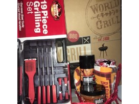 Smokin' Grill 19 pc tool set, stainless steel with riveted, wooden handles
