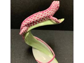 A beautifully hand-painted salamander sitting on a leaf. 6.9" H x 5" W.