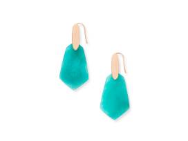 What's not to love about the Camila Rose Gold Drop Earrings in Teal Quartzite? These Rose Gold earrings stand out with their unique hexagon shape and elongated oval accent at the top. A striking example of modern jewelry, these Rose Gold earrings are a wardrobe necessity.