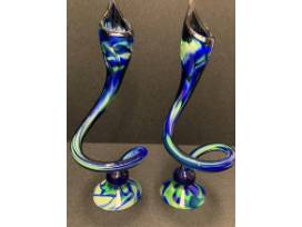 A pair of Jack n' Pulpit candlesticks. Hand made by Hudson. Glass.