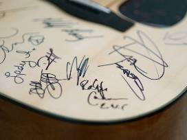 To celebrate CHOC Gala's 15th anniversary, one special guitar went "on tour" to be signed by each artist who performed at past CHOC Galas. Traveling more than 5,400 miles over four years-going backstage at concert venues, sitting in on recording sessions, visiting green rooms before sold-out shows-famed performers eagerly stepped up to sign the Yamaha F335 acoustic guitar. This humble instrument becomes priceless with one final signature from tonight's artist-Gwen Stefani! Her autograph will appear next to those of Lady A, Sheryl Crow, Kelly Clarkson, John Legend, Ryan Tedder (lead singer of One Republic), Keith Urban, Alicia Keys, Lionel Richie, and Philip Bailey, Verdine White and Philip Bailey Jr. from Earth, Wind & Fire. Perfect for the passionate music aficionado, ardent collector or CHOC advocate, this peerless guitar is a piece of music history and a symbol of your commitment to our patients.