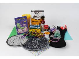 Bring the vibrant spirit of Mardi Gras home with this festive package! Includes a $50 Revelry Food Truck gift certificate, Cafe Du Monde coffee and beignet mix; Zatarain's crab boil in a bag and blackened seasoning; Peychaud's aromoatic bitters. Get ready to party with colorful cups and a plethora of beads!