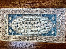 Beautiful rug from Hazel House Collective. Rug is 42" x 22" with soft blues, greens, pinks, and beiges.