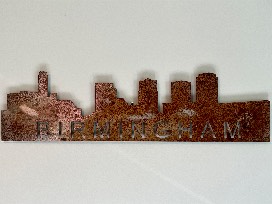 Birmingham skyline metal sign custom made by Sam Dillashaw - 24" x 6" approximately.
