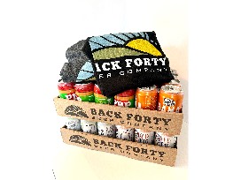Hoodie (M), short sleeve tee (L), and eight 6-packs of Back Forty's best selling beers!