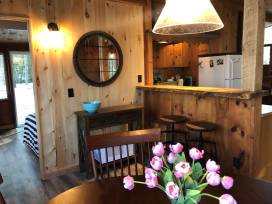 2-night mid-week stay at Lake Winnipesaukee, newly renovated cottage in Meredith, NH. 2 Bedroom, 1 bath. Sleeps 4 to 5 people and overlooks the lake. A small stream full of fish and other wildlife runs through the side of the property. Perfect for families or just a relaxing getaway. Five-minute drive to downtown Meredith. Great spot to hang your hat when in town for a wedding or event at Church Landing or Akwa Marina. Only a three-minute drive to downtown Center Harbor. Ample parking in driveway, Wifi, BBQ, kayaks, paddle board, Firepit. You must supply your linens, life jackets, and beach towels.