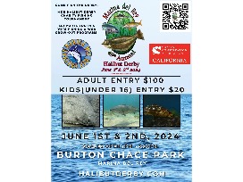(1) Adult and (1) Youth entry for an angler in the 49th Annual Marina Del Rey Halibut Derby. June 1 & 2, 2024 in Burton Chace Park in Marina Del Rey, CA.