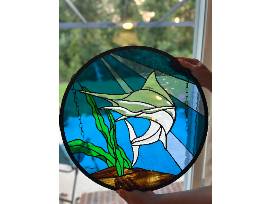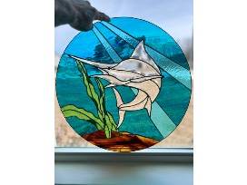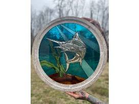 Marlin Dreaming is a custom 22-inch stained glass panel.