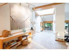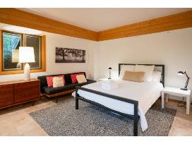 Encounter west coast cool on Michigan's very own third coast! This stunning mid-century home, "Endless Sky," is surrounded by lush woods while being just a short walk from private Lake Michigan beaches. Enjoy a five (5) night stay at this beautiful home, surrounded by the serene atmosphere of Macatawa (near Saugatuck, Douglas and Holland) from multiple wrap around decks and balconies. The four level home easily sleeps 12-14, kids will love the floating beds in the matching bunk rooms that make it feel like their own private tree fort! The master suite boasts a king bed and private bath, with unique custom bathtub and waterfall faucet, plus a massive walk in shower.