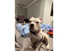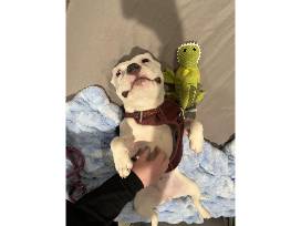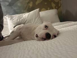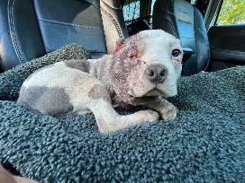 Tina Fey was brought in with 2 other dogs. She unfortunately had to face the harsh reality of abuse. Ears being cropped down to the skull, swollen face, infection from bite wounds were just a few of the signs of the abuse. Tina stayed in our clinic for a while receiving care and bandage changes. She was unable to walk. Tina has recovered physically but remains more on the shy side. Tina is a beautiful soul that has gone through so much, but her tough days are over. She is safe and loved. Tina has a forever home out in Colorado now!