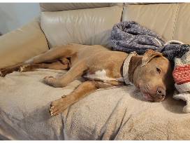This sweet boy was found emaciated and poor condition in St. Louis. He was so pitiful but is the sweetest and has the most gentle soul. The staff all fell in love with him. He is so eager to learn, so happy to please, and he's doing well adjusting into his foster home. Think of him as your "little brown shadow." He wants NOTHING more than to be with his human!