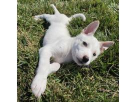 Dave is quite the little gentleman. He loves toys (balls and big stuffies are his favorite) and tug of war is becoming his game of choice. The only thing he may love more than toys is being outside. He loves laying the grass, rolling in the grass and gets the zoomies quite frequently when we are outside because he's so happy. He's a typical playful puppy with lots of energy but after his playtime, he's settles right in for long puppy naps.
