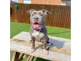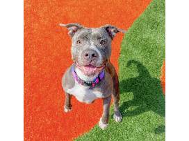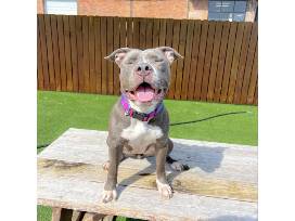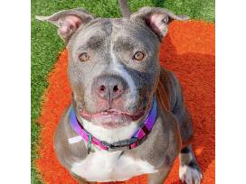 This sweet girl loves to play with other dogs! She's 3 years old and a bundle of JOY! Everyone loves her! She's very easy to walk and when we take her to the play yard she breaks out in ZOOMIES! She's adorable in every way!