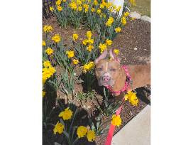Betty Bunny was saved from a kill shelter. She came to us extremely emaciated. Our wonderful vet clinic put her on a refeeding schedule, and she started gaining weight. She is the sweetest girl and has never met a strange. She is happiest on walks and spending time with her favorite people!