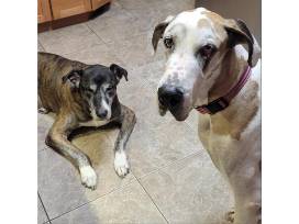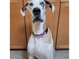 My name is Majestic. I am about 5 years young and the sweetest love. I am a Fawnequin Great Dane that LOVES too just chill and be with you. I had a very hard life before being rescued and didn't know what it meant to be part of a family or even live in a house. You would never know that now as I adore snuggling on the couch, have never had an accident, figured out what toys and bones are, and am happy to stroll through the neighborhood on a leash. Easy going, easily happy, and a true Dane companion! My dream life can include kids that do not climb on me, other laid-back dogs, or even just an only child - I am super flexible! Please make my dreams come true to be loved as much as I will love you and be an amazing family member. I am truly one of a kind and qualify as the best dog ever! I have found my forever home just in time for Christmas!