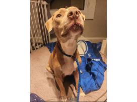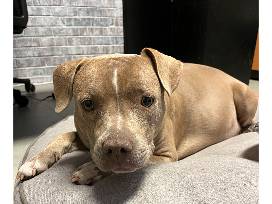 This sweet girl came to us from the streets of St Louis. She was wandering the streets for a while before we got this sweet girl. She is very pregnant and is about to have her babies any day. She just wants to lay around in a quiet room. Top Banana has gone to foster and has a quiet place to have her babies. She ended up having 9 babies and they are doing well! She is on the shy side but is being a good mom and caring for her babies. All of them have been adopted!