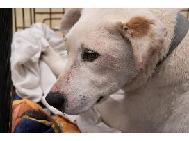 Poppyseed is one we took in while we were on a rescue freeze. Our CEO, Cassady, was contacted to help this precious girl out. She was sent the open wound photos of her legs. Cassady said bring that baby here! We will help this poor girl. She was rushed to us, and our wonderful vet team began to work on her. She has been through a lot and received daily care in our clinic. She recieved bandage changes, IV fluids, IV pain medications, Phovia Fluorescent light therapy, and much more. Despite all of our efforts, she unfortunately passed away.