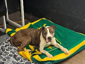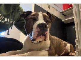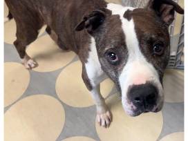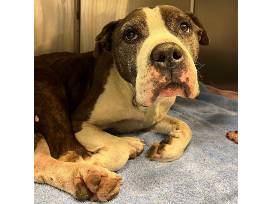 Gaspar was curled up in a tight ball on someone's porch, hiding from the wind. When we got him back to Stray Rescue, we discovered this very nice old man craves affection. Anytime we go spend time with this sweet guy, he does a big stretch and gets off his bed. As we begin petting him, he slowly sinks to the floor. Then he closes his eyes and just melts into the massage. It must feel so good on his 8 year old bones after living outside in the cold. He's covered in lumps and bumps - they are mast cell tumors so he is considered a hospice foster. But he's not on a time clock, he could have years left. He's doing really well now that he's safe and healthy, and we imagine he'll continue to improve in a loving, easy going home! He really enjoys when you make kissy noises and giant tennis balls are like - the coolest thing he's EVER seen! He's a leaner too, he loves to lean into you when you give him pets.