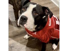 This sweet momma came to Stray Rescue with her 9 puppies in November 2023. She was living in a vacant house, skinny, scared and very protective of her babies. Now, she's in a loving foster home, healthy & happy, her babies have found their forever homes, and she's ready to find hers. Looney Tunes is a fantastic dog. She gets along with other dogs & loves belly rubs. She's such a wonderful companion, & she hopes to find a family to love her.