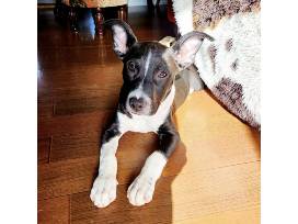 Gilbert is an adorable fearless puppy. He loves playing with his toys and with his doggy friends. He is a little cautious of people at first but once he warms up he is a snuggler!
