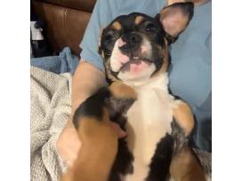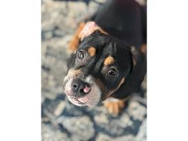 Meet Funky Freddy! This sweet boy is the happiest when he is around people. He is a total snuggle bug. Funky Freddy will lay on his back and soak up all the belly rubs. He has short legs like a basset hound, but that doesn't stop him from running fast! If you are looking for a cuddle bug, then Freddy is your guy!