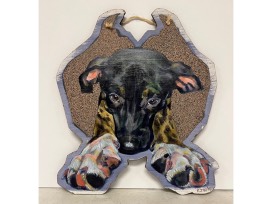 Medium: Recycled masonite, spray paint, acrylic, rope