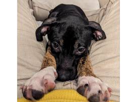 Gargoyle is the fastest puppy you have ever seen! He knows how to put his giant paws to use. He love to snuggle. He even has been known to take a break from eating his meals to run over for a quick smooch! He is a very loving, goofy puppy.He will make you laugh a lot! He turns into a shadow when his favorite person is around. He will always want to keep you company!